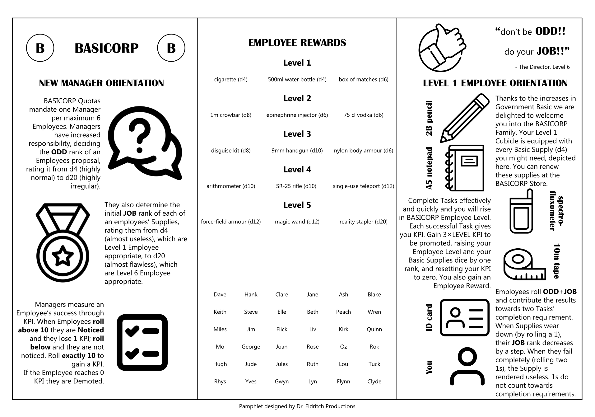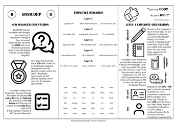Employees complete Tasks to acquire KPIs and get promoted. With higher Employee Levels comes access to the ever-increasing number of Departments, as well as exciting Employee Rewards, all at BASICORP!